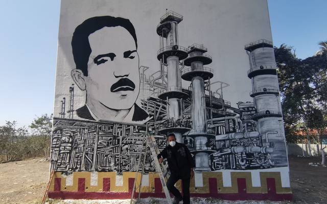 xplicó que se ha dado esta temática al mural que está por concluir, por ser esta zona la que albergó en su momento la incipiente industria petrolera del país, posterior a la expropiación petrolera y que muchos de los visitantes de esta parte del municipio recuerdan con nostalgia.