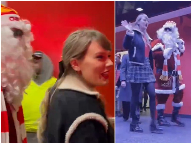 Sin embargo, lo que realmente se robó el espectáculo fue el peculiar acompañante que trajo consigo Taylor Swift antes de que comenzara el emocionante enfrentamiento: nada menos que Santa Claus. La cantante llegó al estadio en compañía del icónico personaje navideño, vestido con su característico traje rojo y barba blanca, llevando la alegría de la Navidad a los aficionados y al equipo.